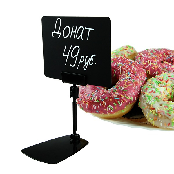 • Вставка в рамки из плотного чёрного пластика для нанесения надписей белым маркером на меловой основе. Рекомендуется использовать со специальными меловыми маркерами, представленными в нашем каталоге. Толщина табличек - 0,5 мм. Углы таблички закруглены.