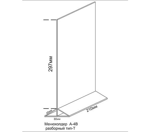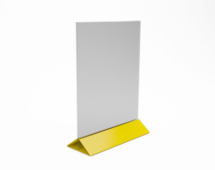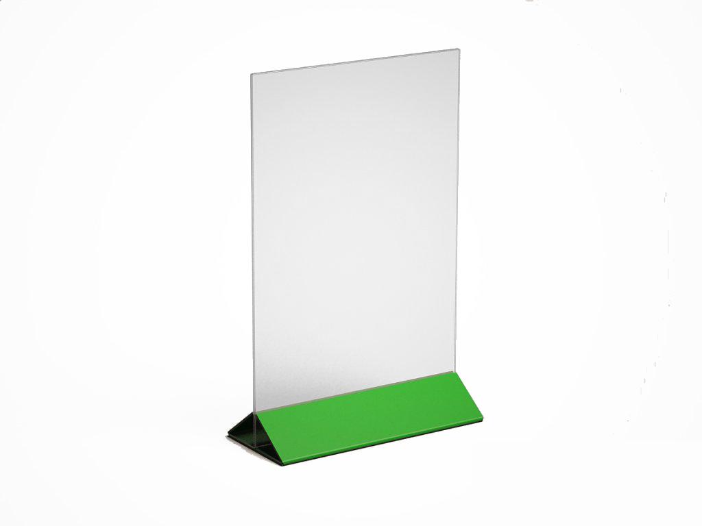 МЕНЮХОЛДЕР ФОРМАТА А-4, С НИЖНЕЙ ЧАСТЬЮ РАЗЛИЧНЫХ ЦВЕТОВ, КЛАСИЧЕСКОГО ВИДА.  СОСТОИТ ИЗ ДВУХ ЧАСТЕЙ,  ПРОЗРАЧНОГО Т-ОБРАЗНОГО ПЛАНШЕТА И НИЖНЕГО ДЕРЖАТЕЛЯ, ТРЕУГОЛЬНОЙ ФОРМЫ. ПОДХОДЯЩИЕ ИЗДЕЛИЕ, ПРИ НЕОБХОДИМОСТИ ПО ОСОБЕННОМУ ВЫДЕЛИТЬ ИНФОРМАЦИЮ.