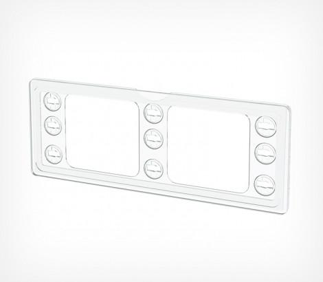 Универсальная рамка-ценникодержатель формата 1/4 А4 с 9 гнездами для установки на полке, фиксации на край полки, крепления на перфорацию. Прорезь для вставки по широкой стороне. Вставки используются без защитных протекторов. Размер вставки 210 х 74 мм.