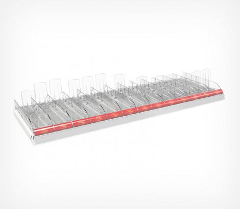 Набор CHOCO-TRAY-SET13 из 13 лотков для выкладки плиточного шоколада 400x1180x145 — поставляется в собранном виде. Набор из 11 лотков для выкладки плиточного шоколада. Поставляется в собранном виде, благодаря этому установка на полку занимает за считанные секунды. В набор включены цветные вставки во фронт для организации сегментации на полке по типам шоколада. Под полки размером 1250 мм