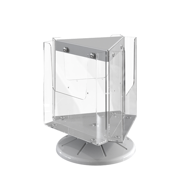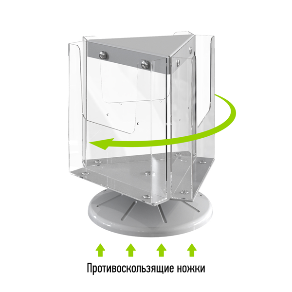 Буклетница настольная трехсекционная А-4 вращающаяся платформа. Каждый из 3-х секций-кармана закреплен на основании из литьевого полистирола и вращается по часовой и против часовой стрелки.