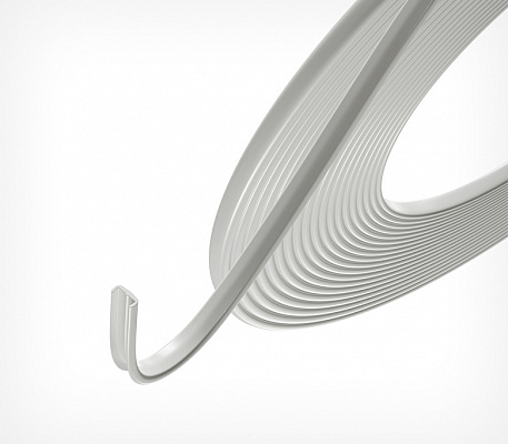 FLEXLINE — это мягкий П-образный профиль из гибкого ПВХ, специально разработанный для обрамления торцов рекламных дисплеев и выставочных конструкций. Профиль поставляется в бухте длиной 200 м