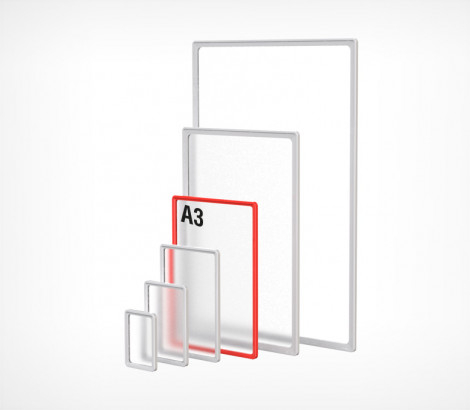 Комплект настенной перекидной системы «Рейка» с рамками «PF», для размещения информации формата А-3. Вертикально или горизонтально. Информация легко меняется.