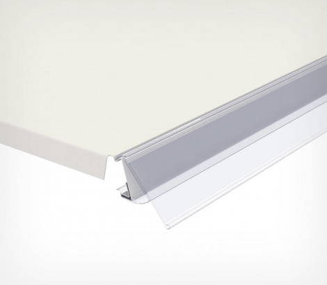 Ценникодержатель для полок MODERN EXPO. Гибкое крепление обеспечивает откидывание ценника вверх.