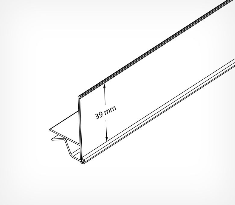 Ценникодержатель GLL-39 незаменим для размещения ценников на стеклянных и деревянных полках толщиной 4-6 мм в аптеках, магазинах косметики и парфюмерии, и т.д.