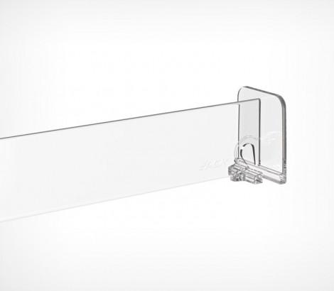 Разделитель DIV60-BT60 выс.60 мм с передним огран.60 мм — пластиковый разделитель с передним ограничителем. Имеет насечки с шагом 25 мм для обламывания по длине, материал: прозрачный ударопрочный пластик. Применение: для организации выкладки небольших лёгких товаров, таких как сигареты, лекарства, парфюмерия и косметика.