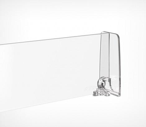 Разделитель DIV60-BT60 выс.60 мм с передним огран.60 мм — пластиковый разделитель с передним ограничителем. Имеет насечки с шагом 25 мм для обламывания по длине, материал: прозрачный ударопрочный пластик. Применение: для организации выкладки небольших лёгких товаров, таких как сигареты, лекарства, парфюмерия и косметика.